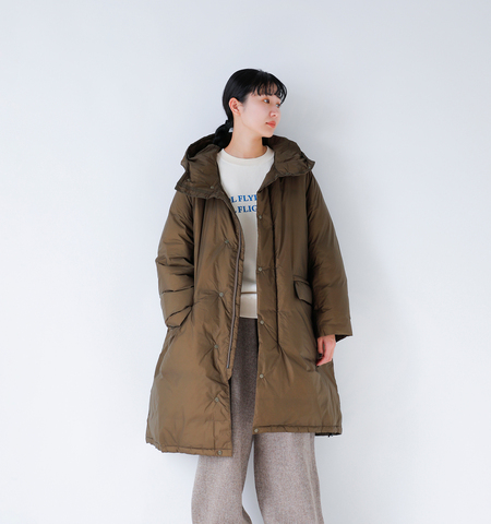 表地と裏地には、軽くて耐久性に優れたナイロン素材を使用し、快適な着心地を実現しています。中綿にはダウン90%、フェザー10%を採用。ダウンならではの高い保温性で軽やかに暖かく、フェザーが程よい膨らみを支えることで、ふんわりとした着心地を生み出します。寒い日でもストレスなく着用できる一枚です。
