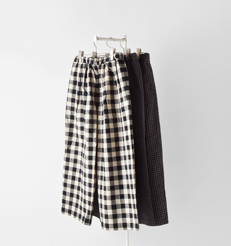 ゆったりとしたワイドシルエットが、体のラインを拾わず、自然と抜け感のあるスタイルに。柄は、ブロックチェック・チェック・チドリの3パターンをご用意。シンプルなトップスと合わせるだけで、コーディネートにほどよい存在感を加えてくれる一本です