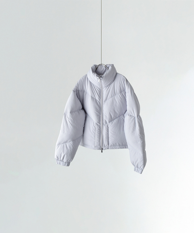ゆったりとしたワイドスクエアシルエットのダウンジャケット。ボリューム感のあるスタンドカラーで、首元まで暖かく包み込んでくれます。上下から開閉できるダブルジッパーや斜めに入ったキルティングステッチなどスポーティーなディテールデザインですが、光沢を抑えたマットな素材感で上品な印象に仕上げました。