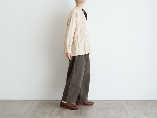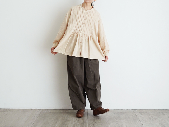 TUTIE.|リネンコットンウールギンガムチェックタックブラウス 長袖シャツ