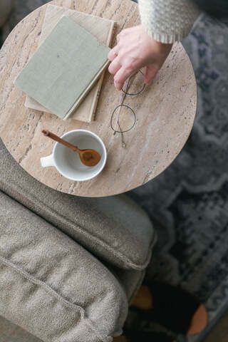 sed/met(セドメット)クロステーブルは、天然大理石とマンゴーウッドが織りなすコントラストを楽しむ、ラウンド型のアクセントテーブルです。小ぶりながらも確かな存在感を放ち、空間に上質なリズムと静けさをもたらします。