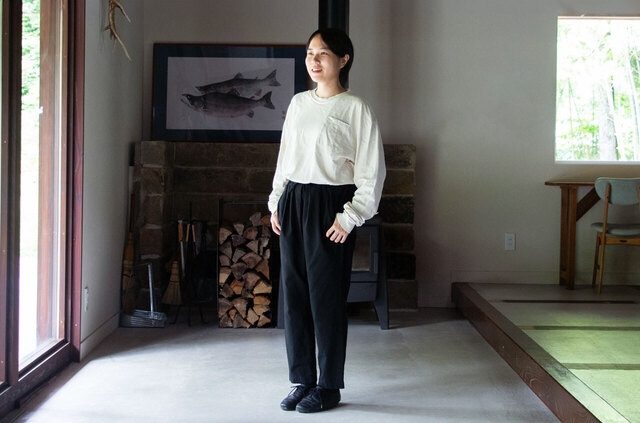 ヒップ部分には、マタギもんぺ最大の特徴の大きなタックを入れました。