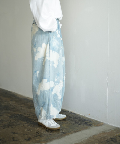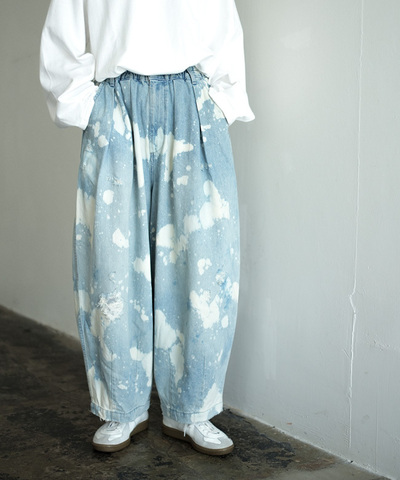 solamonat poche|デニムイージーパンツ ジーンズ ワイドパンツ ゆったり ワンウォッシュ ユーズド ブルー 【ご予約商品/2月下旬頃入荷予定】poche-dm-ez