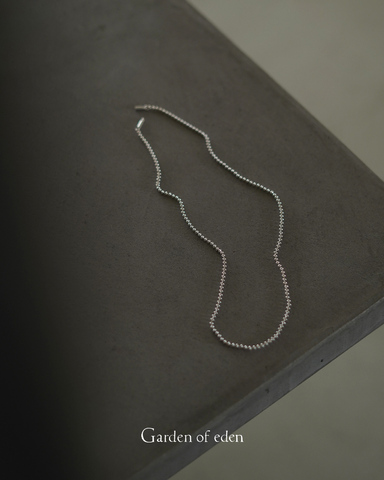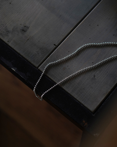 こちらは、楕円を描くボールを連ねたオーバルボールチェーンネックレス。一粒一粒の丸みが光を柔らかく反射し、控えめでありながら確かな存在感を宿す一本です。