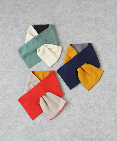 このリバーシブルで使えて洗えるマルチカラーマフラーその技術を活かしつくられています。