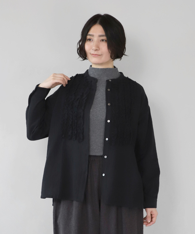 mumokuteki|ボタニカルレースの シャーリングブラウス