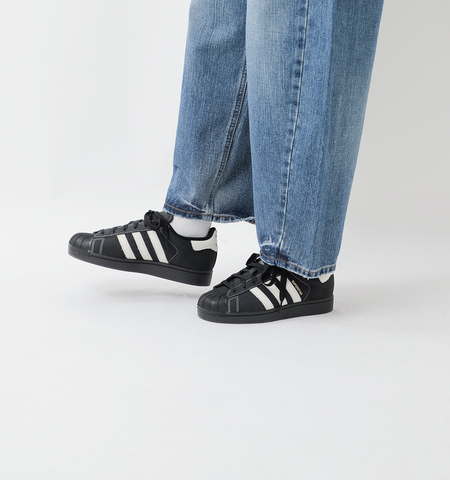 ●つま先にはSUPERSTARを象徴する硬質のシェルトゥを配置。耐久性とデザイン性を兼ね備えたアイコニックなディテールです。