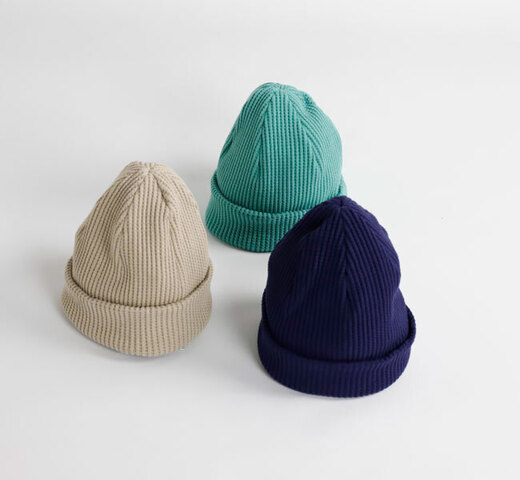 Jackman新作定番再入荷です。特殊な編み機で編んだふんわりとボリュームのあるビッグワッフル素材を使用したワッチキャップ。軽さと柔らかさがあるため、ストレスなく着用いただけます。生産は福井県の自社工場で生産されています。