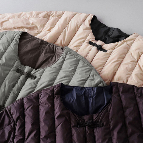 チャイナボタンがアクセントになったリバーシブルダウンジャケット