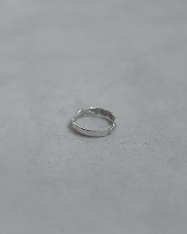 こちらはミニマルなIDリングをベースに、繊細な編み上げのディテールでアレンジを利かせた一品。