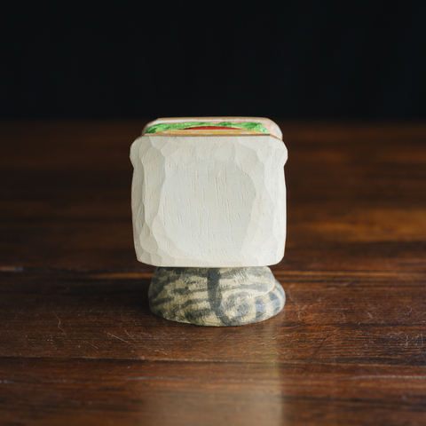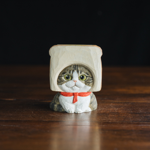 木彫りに絵の具で着色。表情が美しいというか可愛いというか、スーッと吸い込まれそうなキラキラした姿をしています。見惚れちゃう見つめ返しちゃう正面、見惚れちゃう横顔、可愛らしいフォルムのネコちゃんたちが食べ物になっているところもこれまた憎い演出!この天才!と思いながら準備を楽しませていただきました。