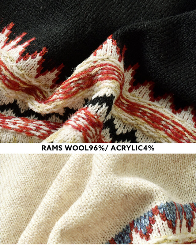 裾と袖口のサーミの民族衣装を参考にしたジャカード柄が素敵で存在感を放つデザイン。寒い季節のスタイリングの主役としてしっかりと活躍してくれます。