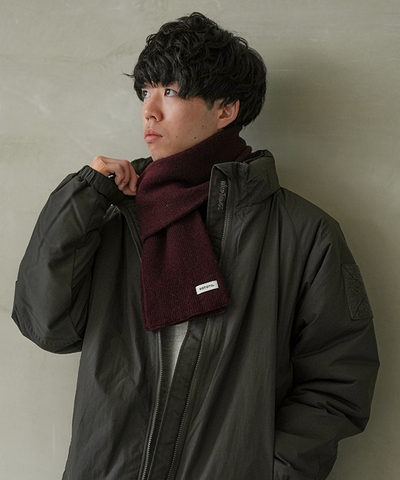 ・ミリタリーのチューブマフラーから着想を得て、靴下編み機で編み立てられたニットストール。
