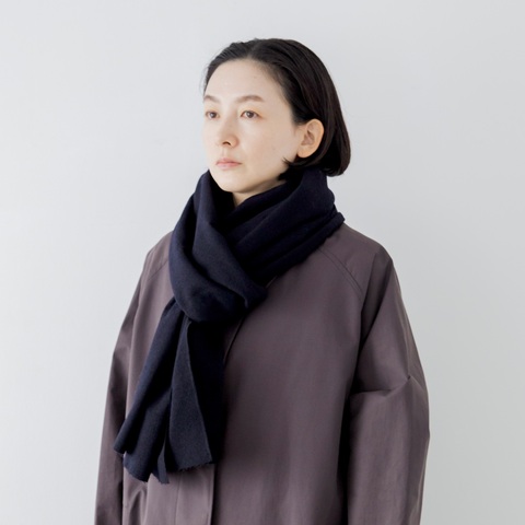 神奈川県鎌倉市を拠点とするレザー小物ブランド「ERA.(イーラ)」の、縮絨(しゅくじゅう)ウールを使ったシンプルなマフラーです。