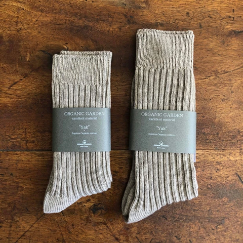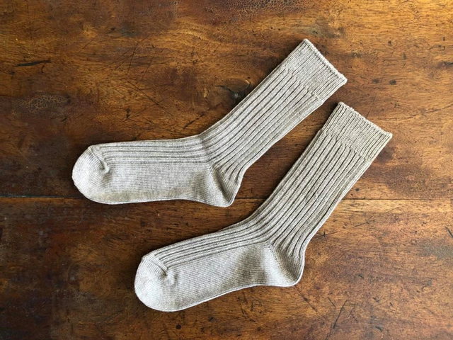 ざっくりとローゲージで編み立てたやや厚手なカジュアルなソックスです。