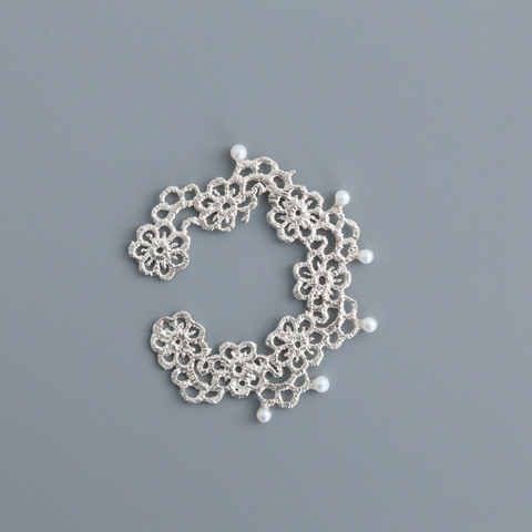 優美なレースの模様と、金属のやわらかなきらめきが合わさったアクセサリーは、身につけるたびに心をときめかせてくれるはず。
