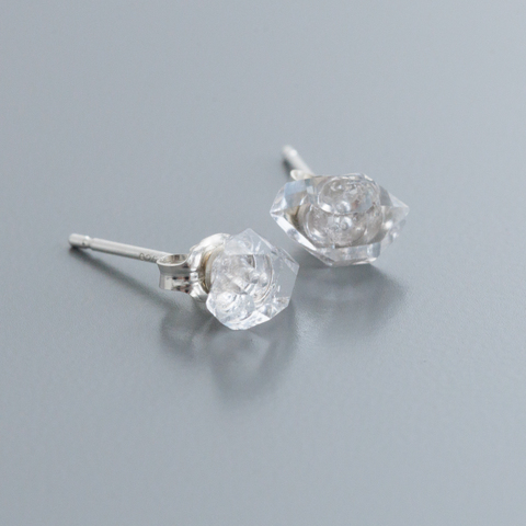 ハーキマーダイヤモンドの美しさが引き立つ華やかな佇まいのピアス。