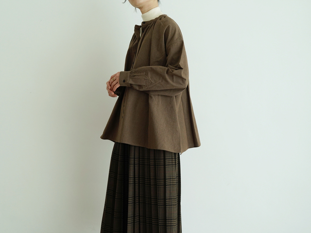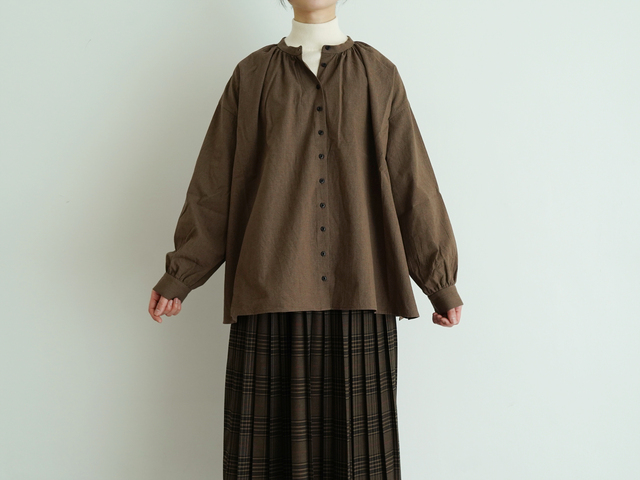 TUTIE.|リネンコットンウールギンガムチェックタックブラウス 長袖シャツ