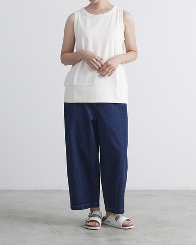 太めの裾切り替えがポイント!レイヤードの「裾見せ」にも大活躍する万能タンク