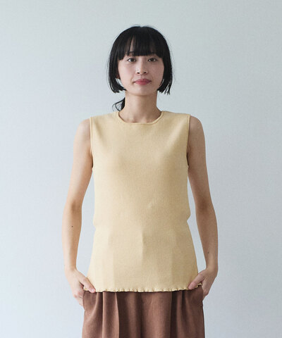 一枚でもサマになり、重ね着にも最適なノースリーブのニットインナー。