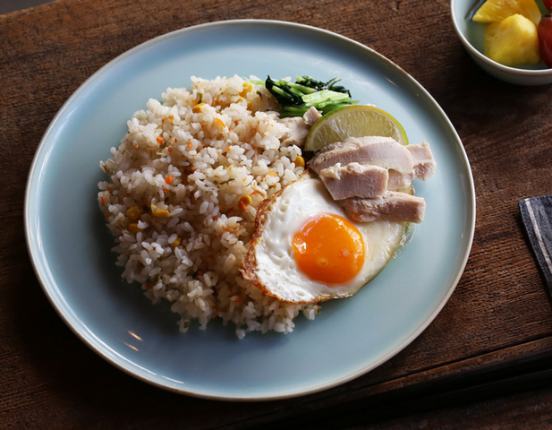 淡い青みがかった透明感のある釉薬とフラットな底面が特徴で、ピラフやパスタなどはもちろん、主食とおかずをのせたワンプレートなどにも重宝する大皿です。