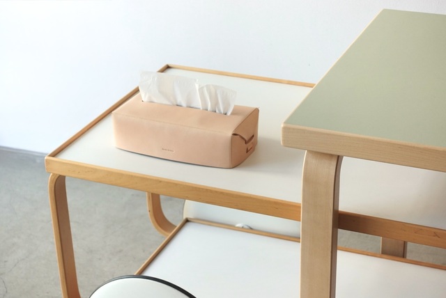 手の届く場所に置いておきたいけど、置く場所に困るティッシュボックスケースは、レザーケースに着せ替えることで洗練された空気を纏いインテリアにそっと馴染みます。
