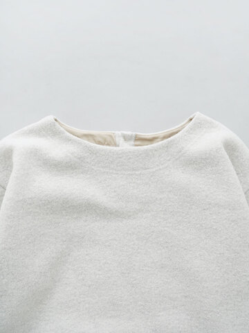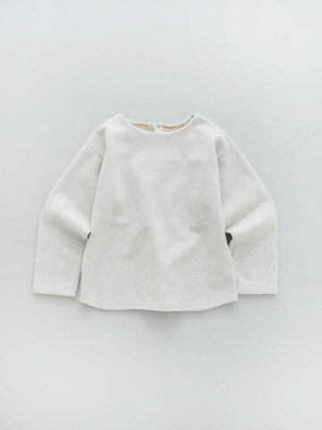 適度にゆとりのある身幅のプルオーバー。横に広いボートネックが襟のラインを綺麗に作り、上品な印象を与えてくれます。