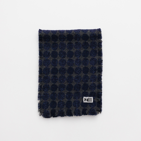 さらに、手紡ぎのように凹凸のあるウール糸を加えることで、あたたかみのある味わい深いドットが生まれました。