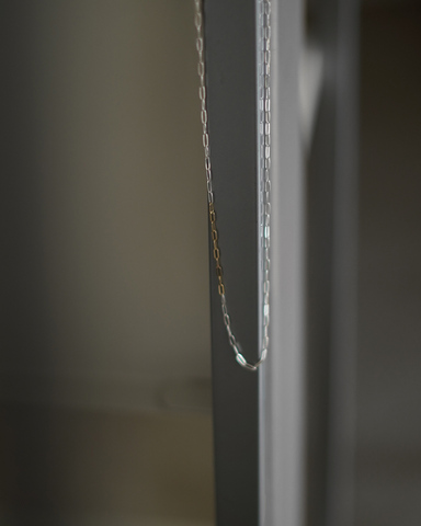こちらはペーパークリップ型のリンクで構成したネックレス。9Kイエローゴールドとシルバー925を組み合わせたコントラストを活かしつつ、均整の取れたデザインによって上品にまとまる一本です。