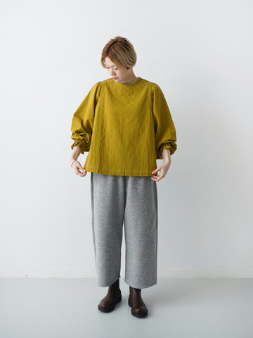 袖付けから袖口までたっぷりとしたギャザーが入り、さらに袖口にゴムを利かせることでふんわりとしたかわいい形に仕上がりました。