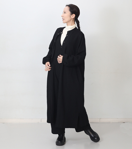 インナーにタートルネックニットなどを合わせて幅広いコーディネートを楽しめます。