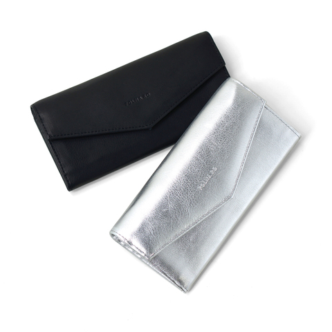 FOLNA RDの定番素材“ソフトレザー”と“ホイルレザー”を使用した、シンプルなフラップ型の長財布です。