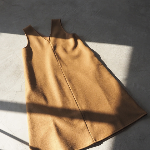 ふんわりとしたメルトンウールのぬくもりにすっぽりと包まれるような、メルトンウール ジャンパースカートです。大きくV空きになったネックラインで上品な印象に仕上がり、フェイスラインもスッキリと見せてくれます。