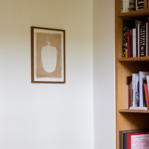 ポルトガルの長い夏の間、水を新鮮に保つために使われてきた伝統的な土製花瓶の形態を探求している「Sketch Vase」。柔らかなピンク色の水彩絵の具を積み重ねて制作されたこの作品は、ネガティブスペースから花瓶の形態が浮かび上がっています。