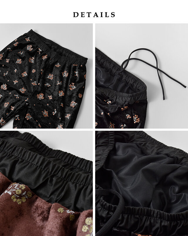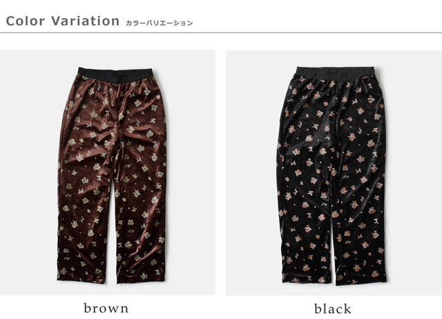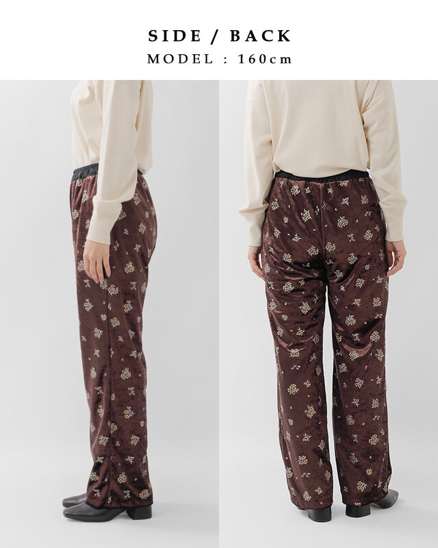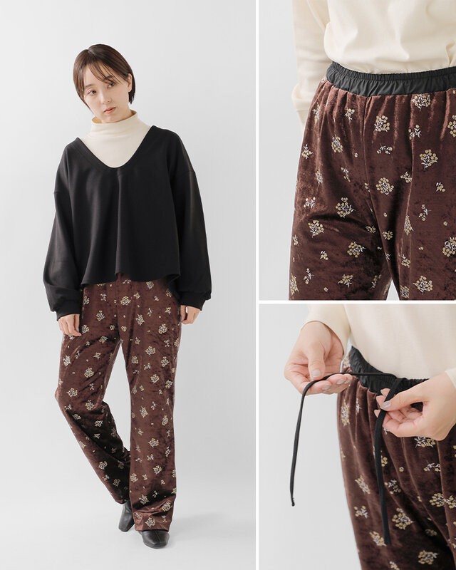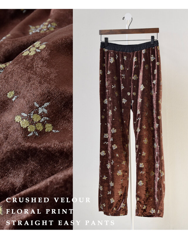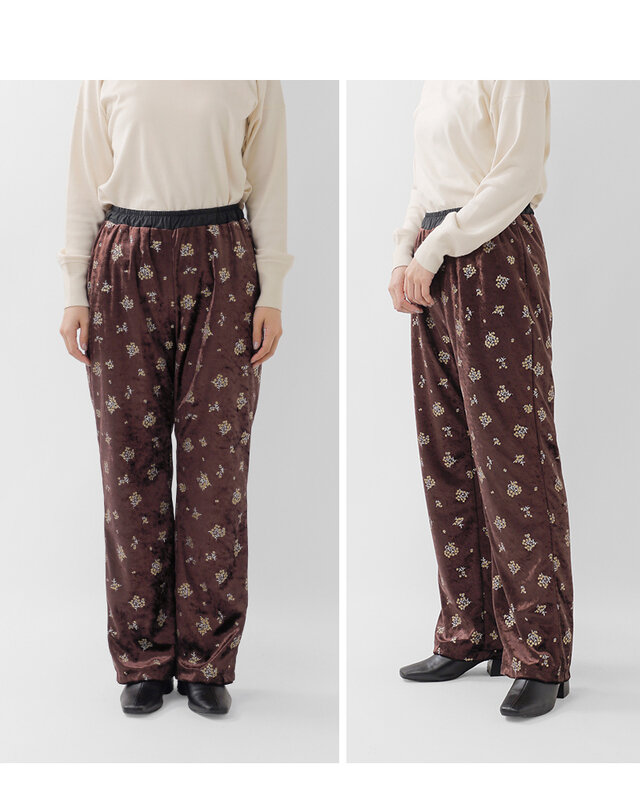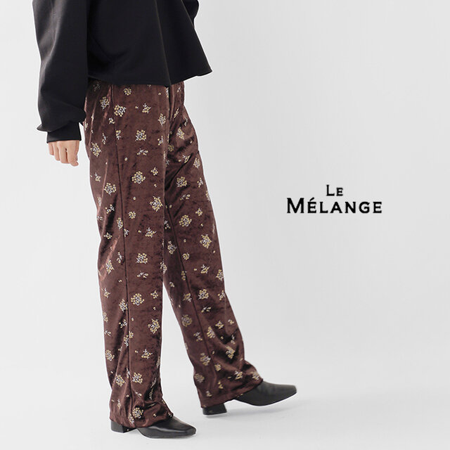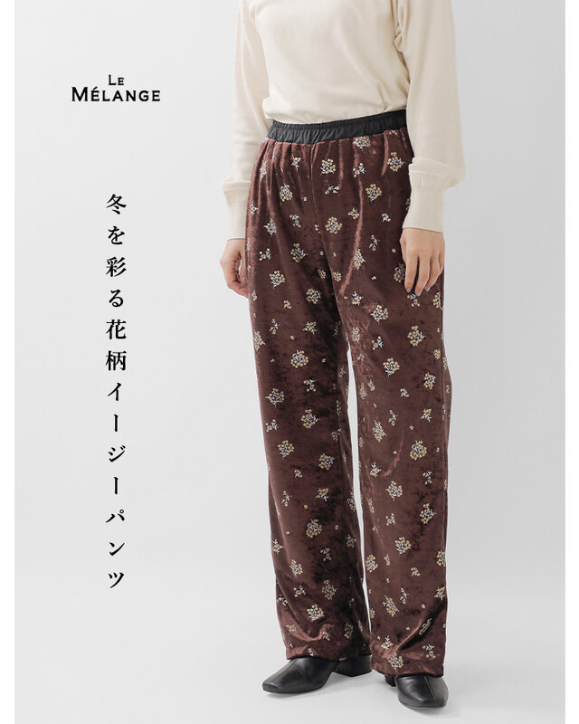 Le Melange|クラッシュベロア フラワープリント ストレート イージーパンツ 8551502