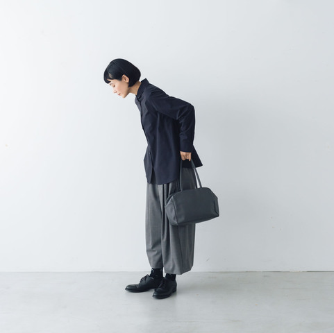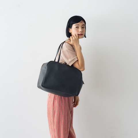 アパレルブランドでデザイナーをされていた講神いつ実さんが独立し、立ち上げたブランド「a(アー)」のボストンバッグ。定番のブラックに仲間入りしたのは、細かなシボが入った表情のあるグレーカラー。