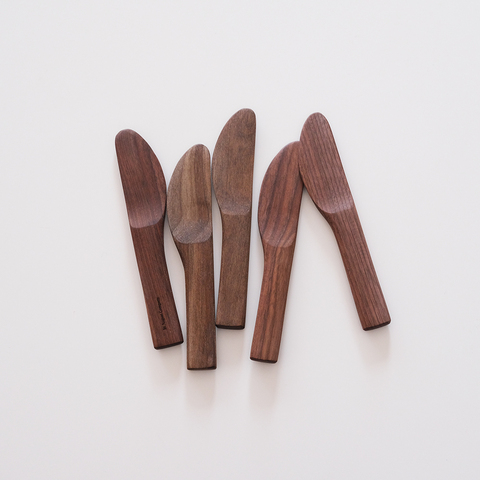 無垢材のウォールナットに亜麻仁油を含ませて仕上げたシンプルなバターナイフは、柔らかな丸みのあるフォルムが可愛いアイテムです。