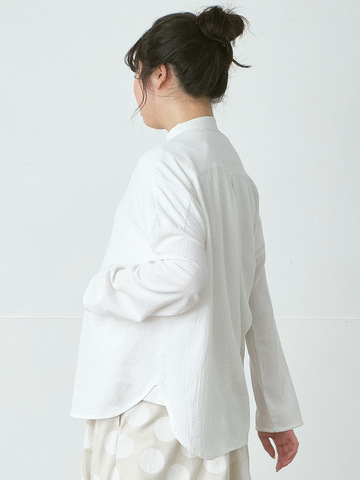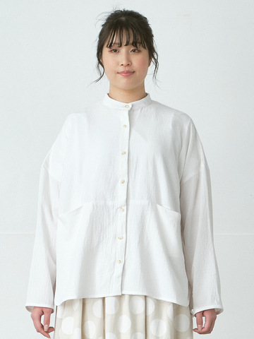 ナチュラルな雰囲気のやわらかなコットン生地で仕立てたバンドカラーブラウスです。