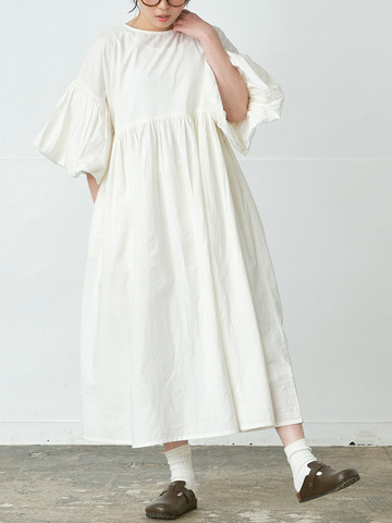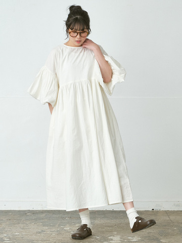D*g*y|配色バルーン袖ワンピース 綿麻ジャガード D9607