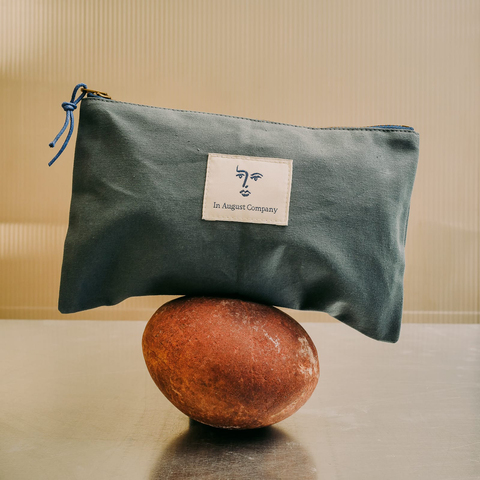 こちらは撥水加工が施された上質なコットンキャンバス生地のポーチ。In Augustさんのロゴがワンポイントになった普段使いにぴったりのシンプルなアイテムです。
