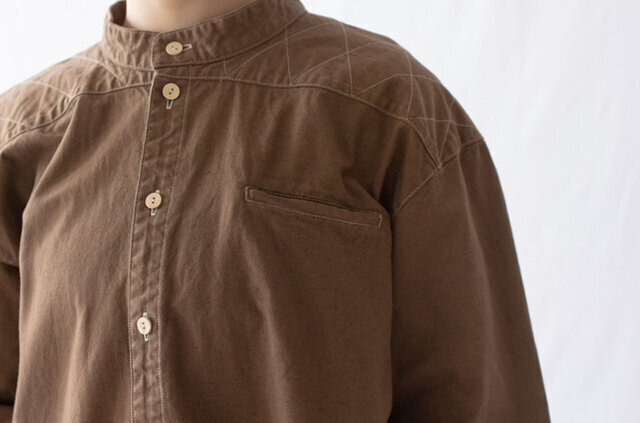 東北で昔着られていた仕事着の一つに、「山シャツ」と呼ばれるものがありました。形はシンプルな詰襟の長袖シャツで、野良や山仕事の時に着られていたものです。