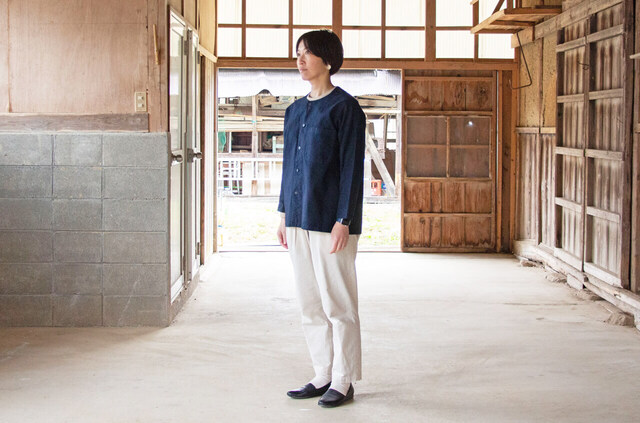 鯉口の名前の由来にもなっている鯉の口のように窄まっている袖口の形状は、作業などをする時などに袖が邪魔にならない作りです。 八分ほどの袖丈で一般的な鯉口よりも若干長めの作りになっており、日焼け対策や虫除けをしながらも涼しく着用できます。
