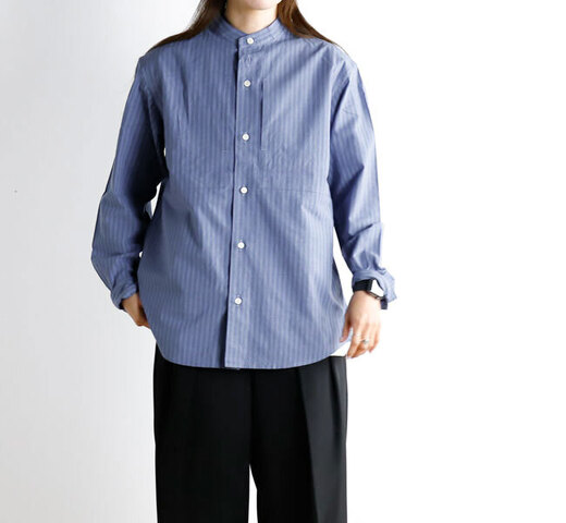 nisica|nisica ニシカ NIS-1365 バンドカラーシャツ ストライプパープル 長袖