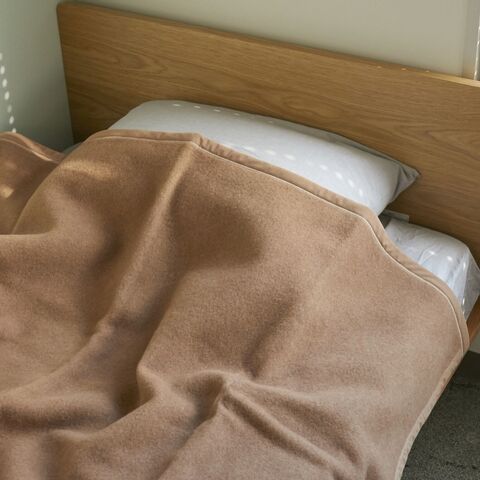 三井毛織の「キャメルの洗える国産掛け毛布」は、ウールの2倍のあたたかさ、蒸れにくさ、柔らかさを備えたずっと使い続けたくなる毛布です。そして、ヘタリにくく家庭でケアできるから、使い続けやすさも抜群。あらゆる角度で抜け目のない一品です。