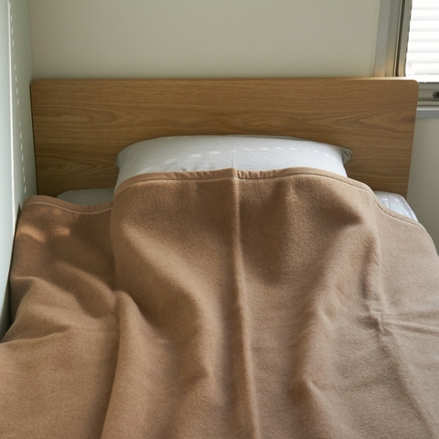 キャメルに限らず、獣毛繊維の毛布は家庭の洗濯機で洗うことができないものがほとんどです。シーズンが終わるたびにクリーニングに出すのは面倒だし、枚数が多ければ費用もそれなりになります。