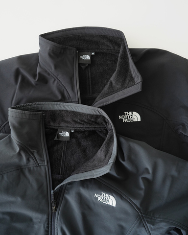 表地(ソフトシェル):軽量かつ耐久性のある仕上がり。滑らかでシェルのように風を受け流しやすい構造。微光沢でアウトドアから街まで映える洗練された見た目が特徴。