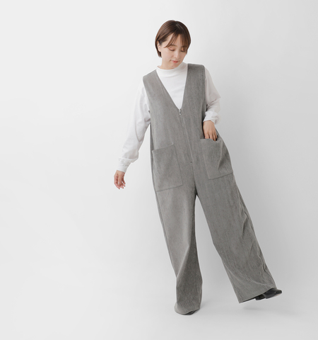 assiette|ストレッチ ベロア Vネック フロントZIP ジャンプスーツ a29-36502-54-mn