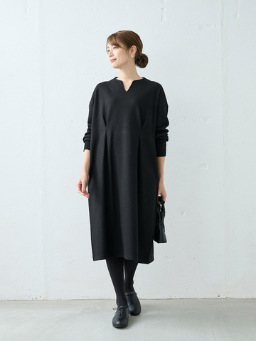 軽くて暖かい、秋冬の定番素材、尾州の「圧縮ウール」のワンピース。
