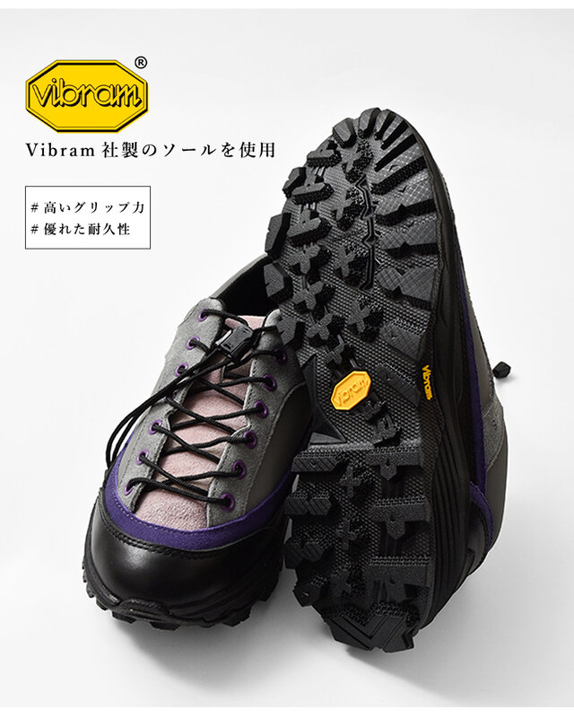 イタリアのトレッキングをベースに、レースシステムをクイックレース、アウトソールはVibramソールを使用することで現代的なデザインにアジャストしました。