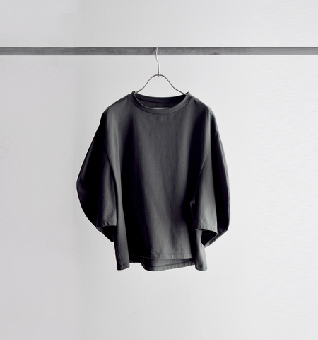 肩から袖にかけて丸みを描く立体的なシルエットが特徴。腕まわりに程よい余裕を持たせつつ、着たときのラインが美しく見えるよう設計されています。シンプルなTシャツに上品なニュアンスを生む、SI-HIRAIらしいポイント。